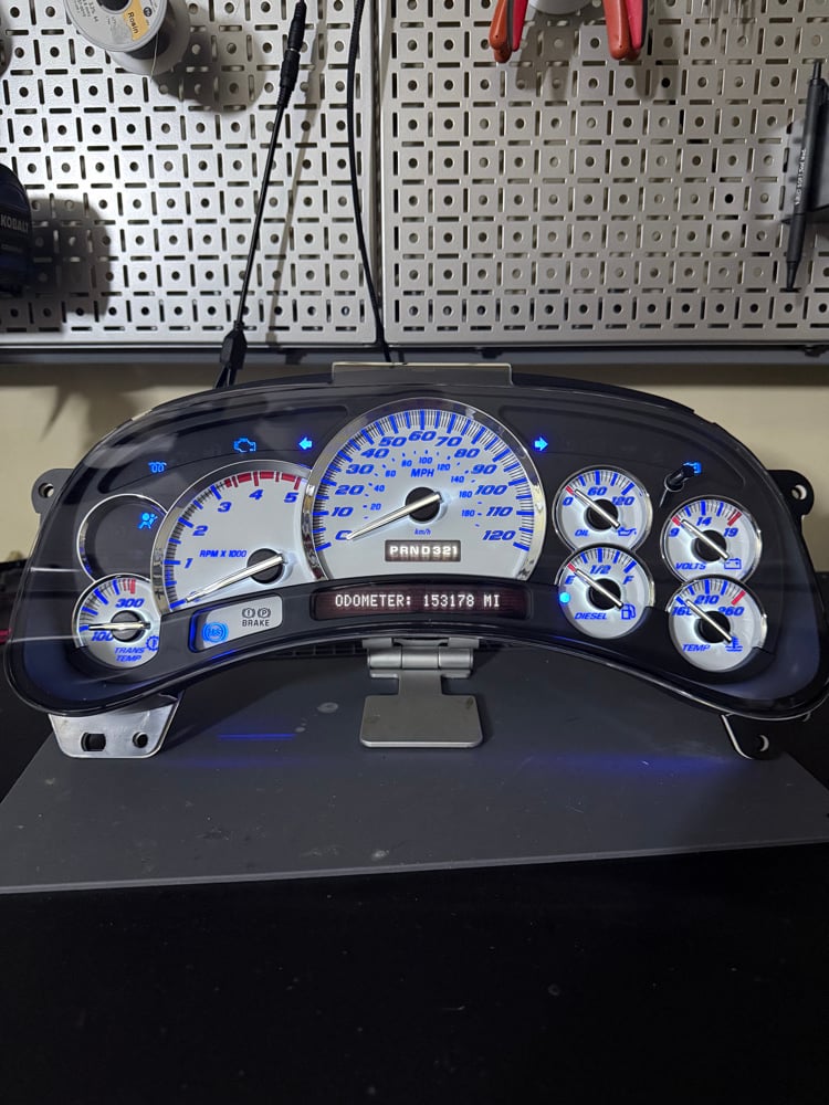You MUST send in your existing cluster for this service. This is a custom build for your 2003–2007 GM Full-Size instrument cluster GAS or DIESEL — it does NOT include the purchase of a new cluster.