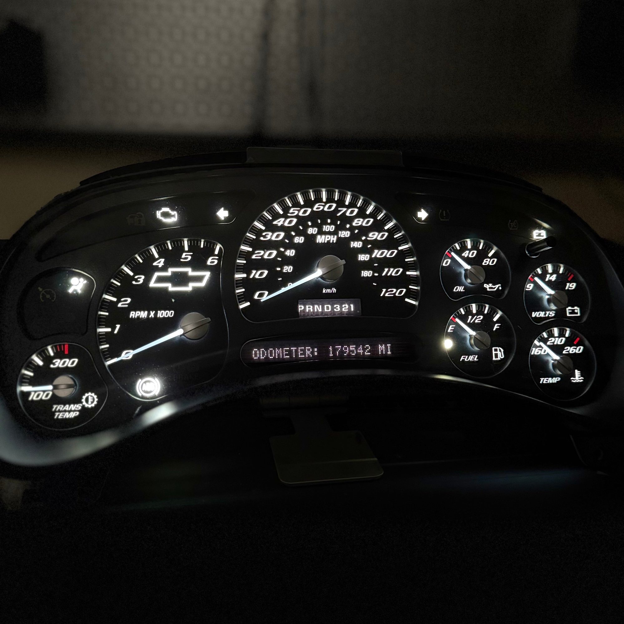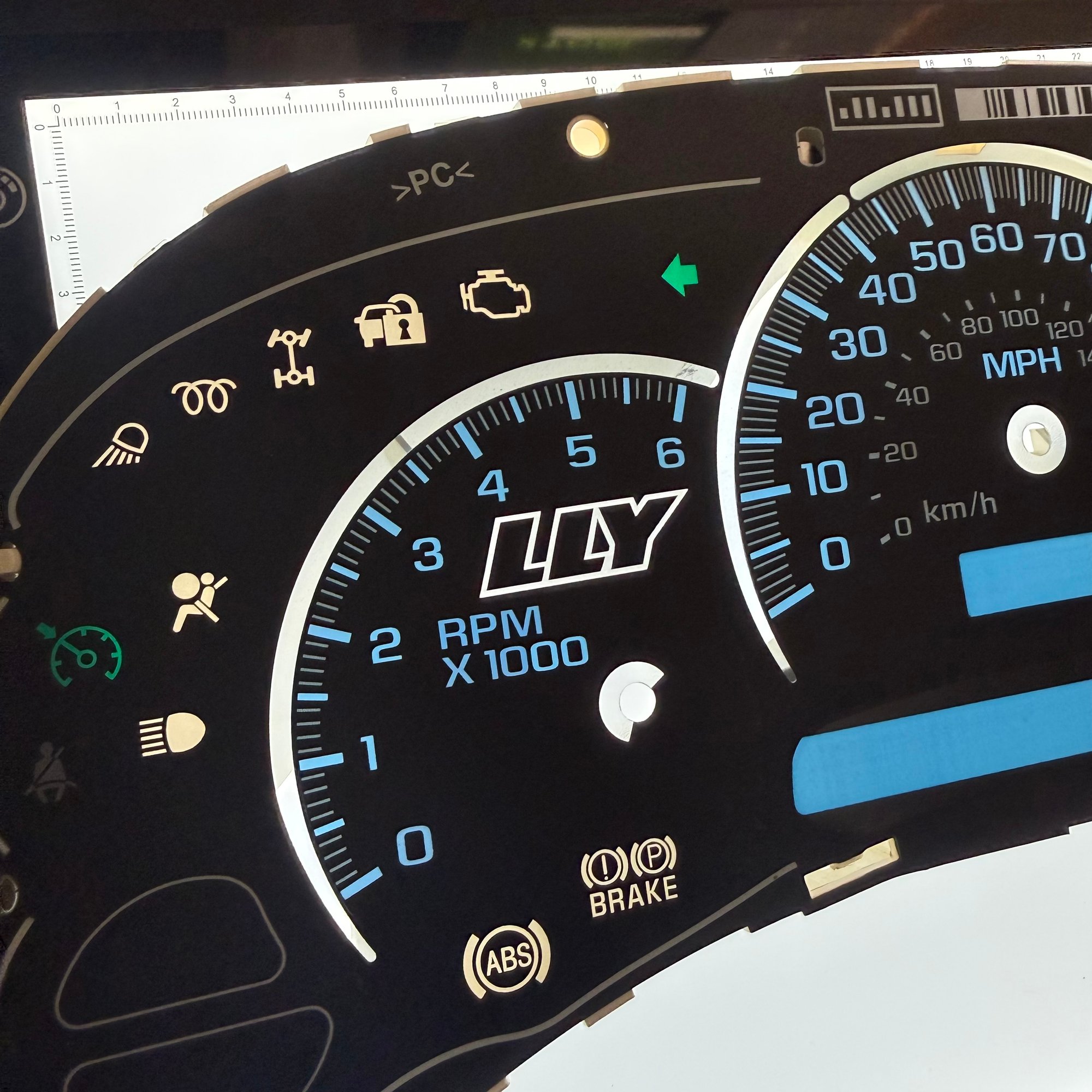 Add this option to your cluster purchase (e.g. mail-in custom build, plug & play cluster, or a standard rebuild) to make your cluster truly yours — a subtle upgrade that elevates your GM Truck or SUV.
